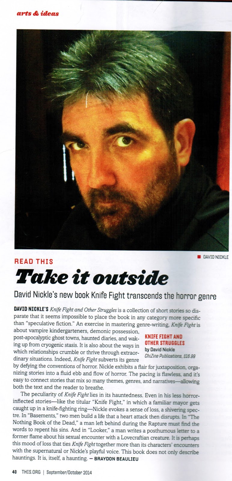 Knife Fight and Other Struggles is coming out in a month, but the first review has hit the streets already, in the venerable Canadian magazine of arts and progressive politics, This Magazine. And I am delighted, and as always relieved, to report that reviewer Braydon Beaulieu dug it.